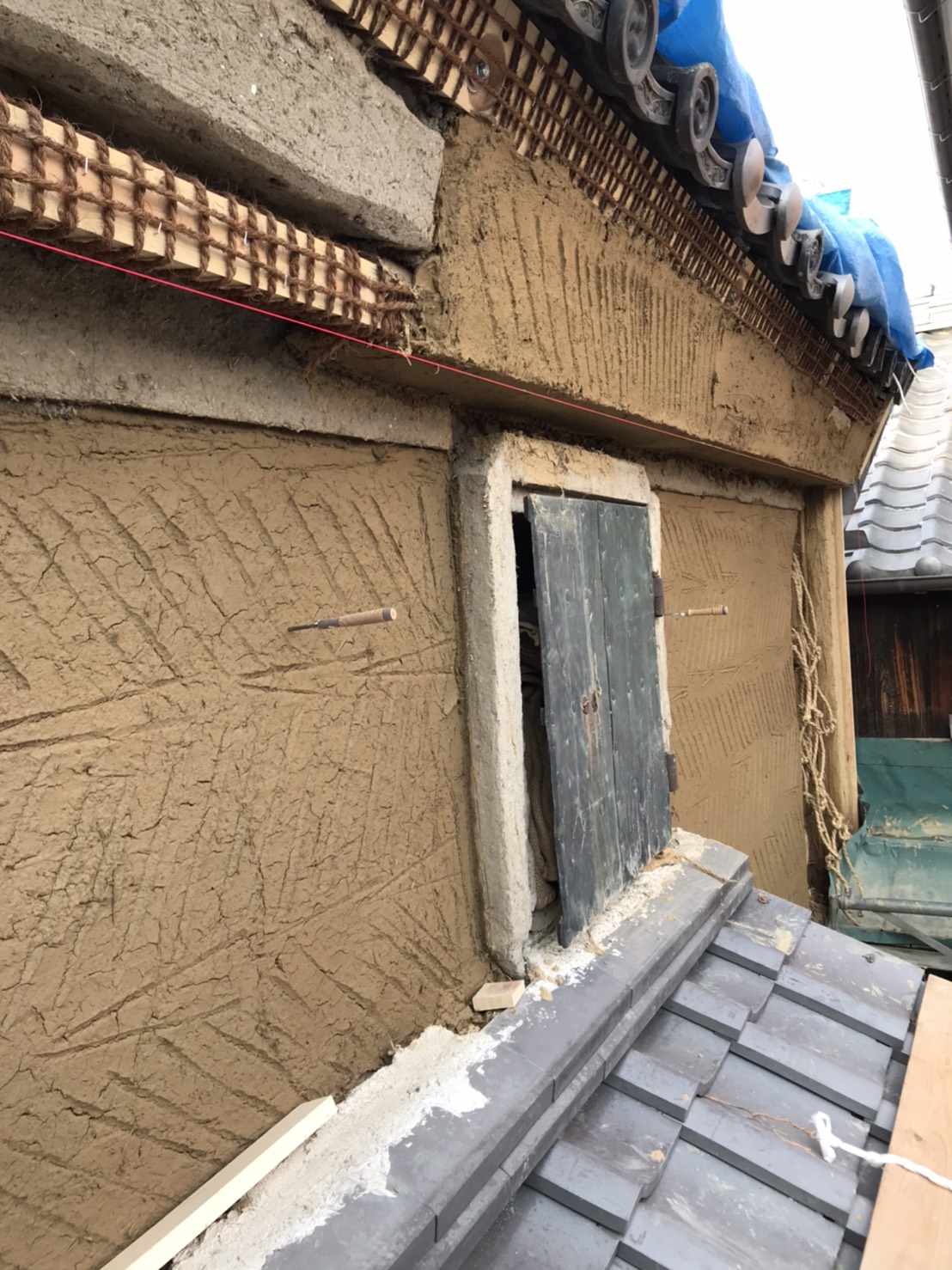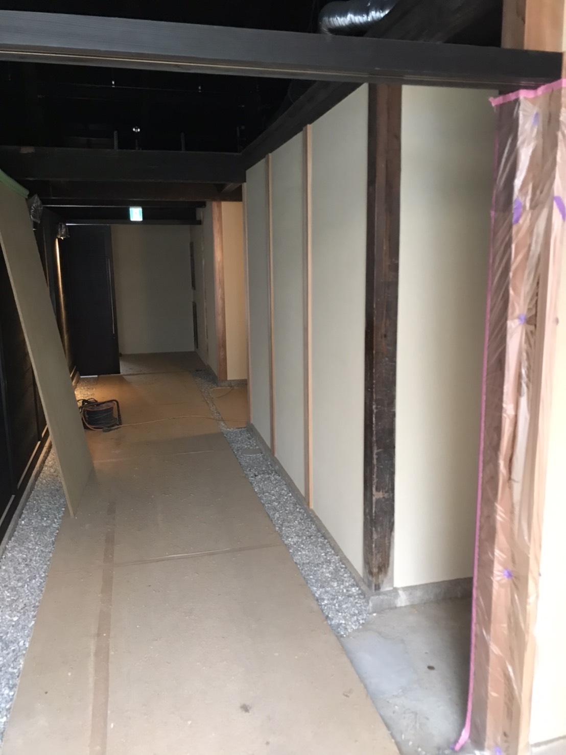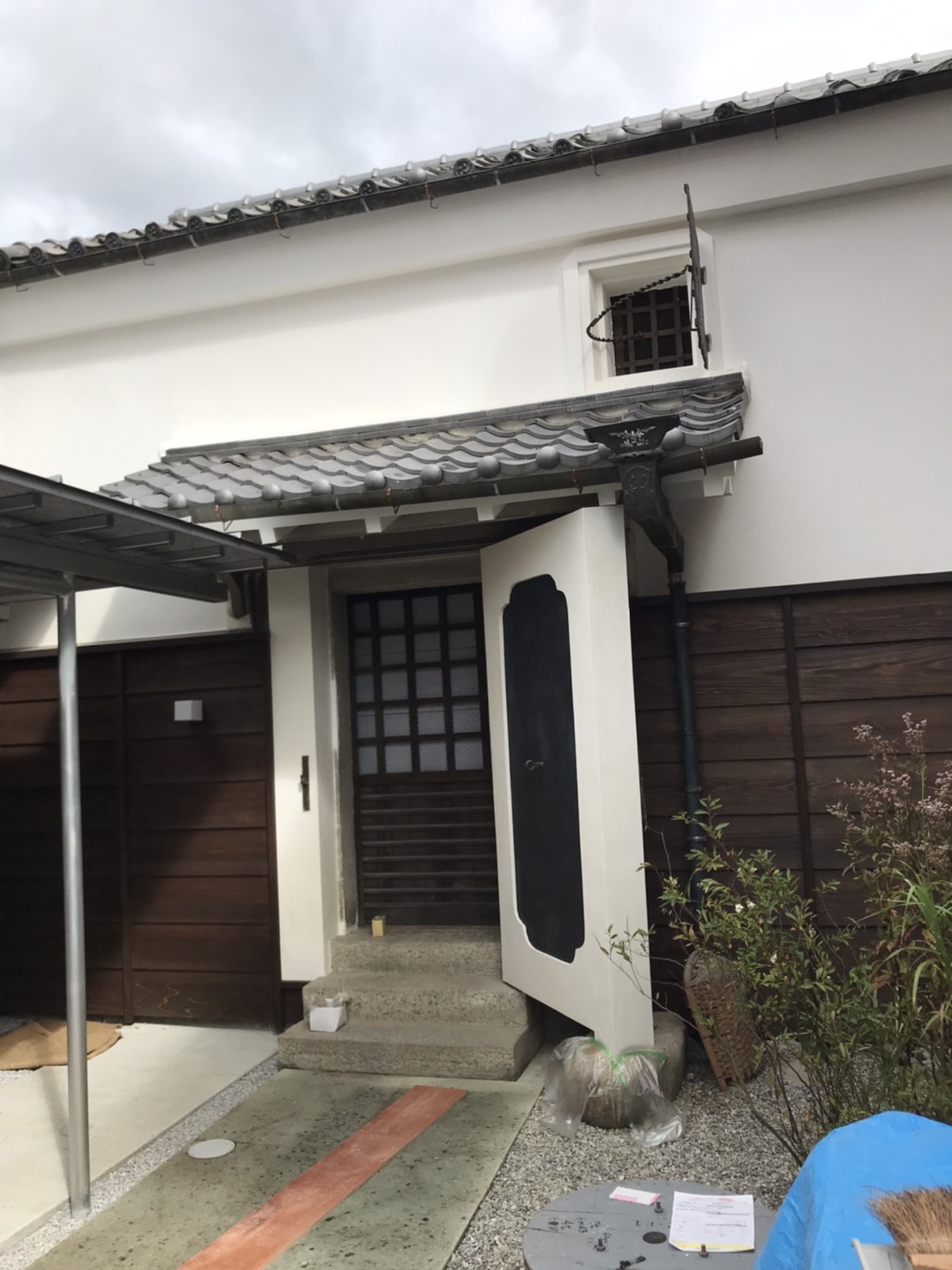 客室の一部土壁仕上げと、一部外壁の漆喰の塗り替えをさせていただきました。