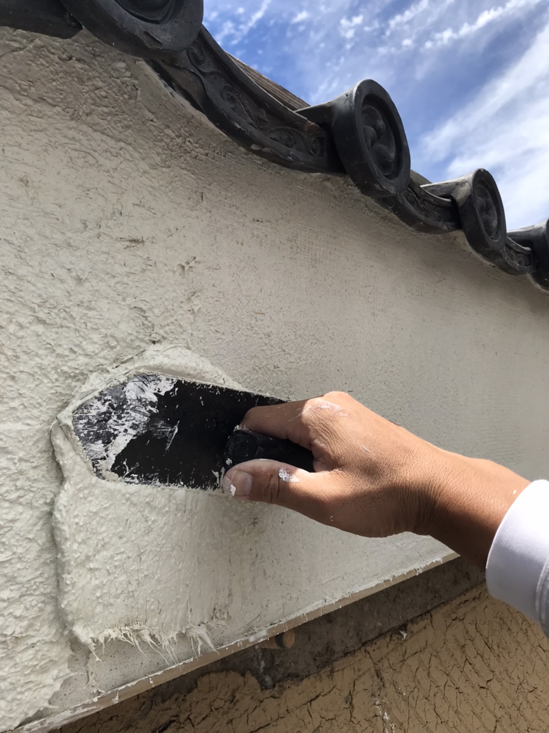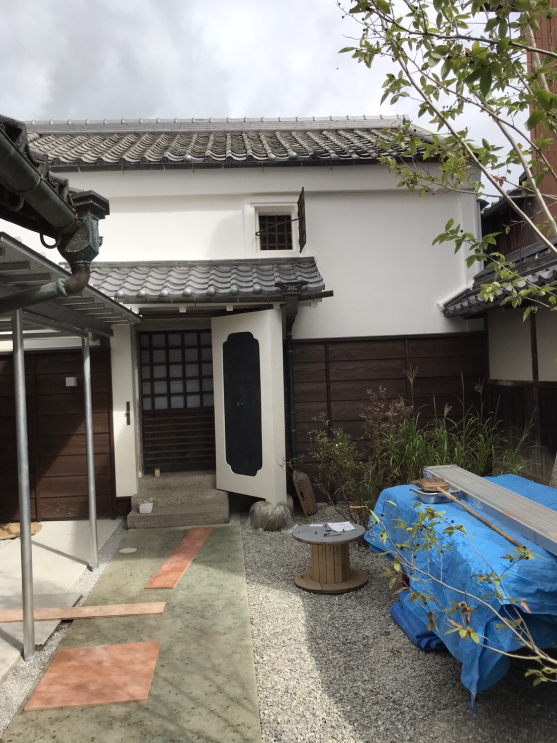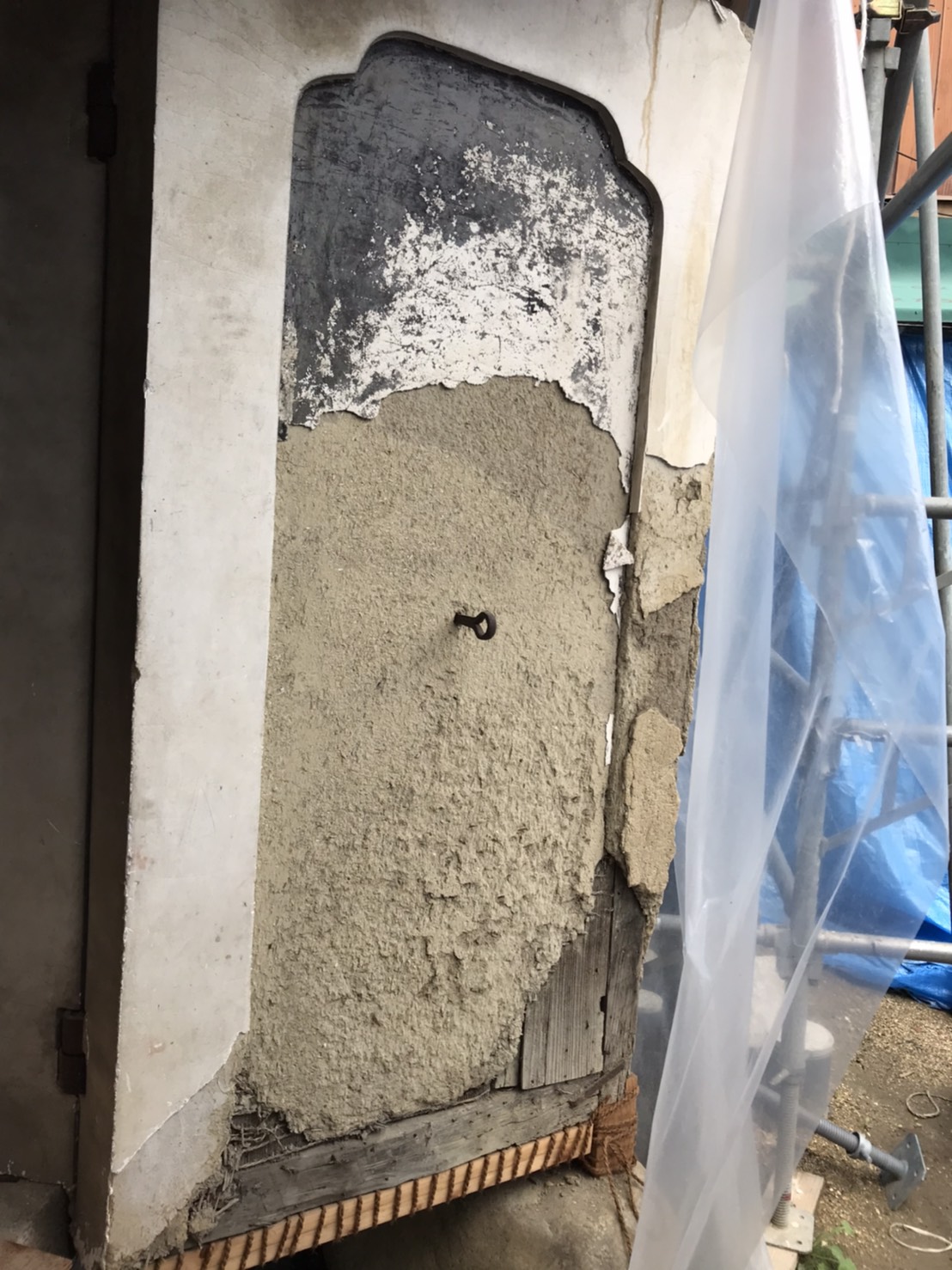 客室の一部土壁仕上げと、一部外壁の漆喰の塗り替えをさせていただきました。