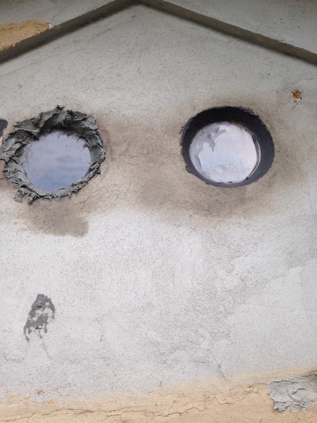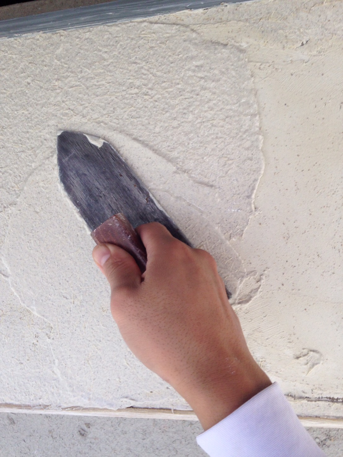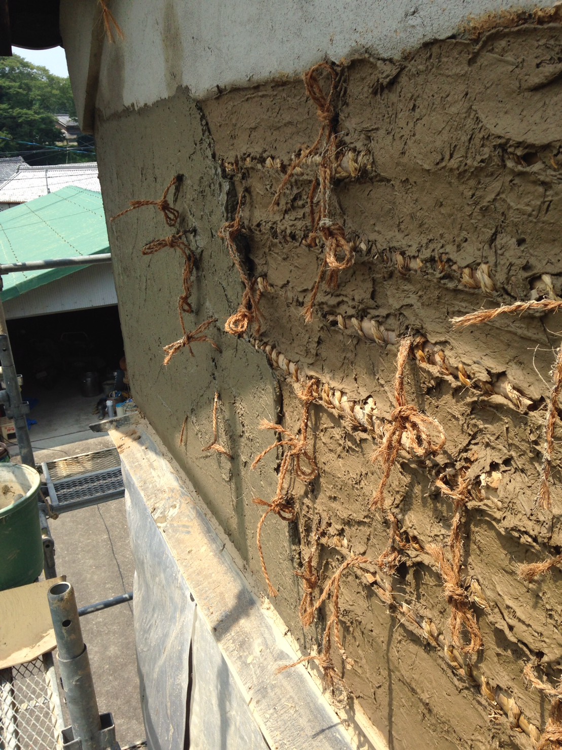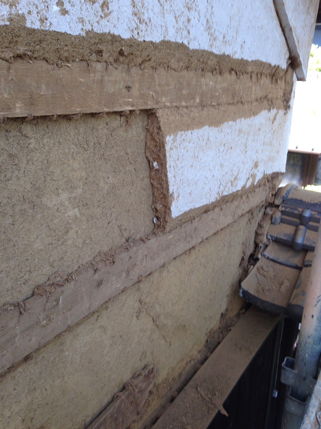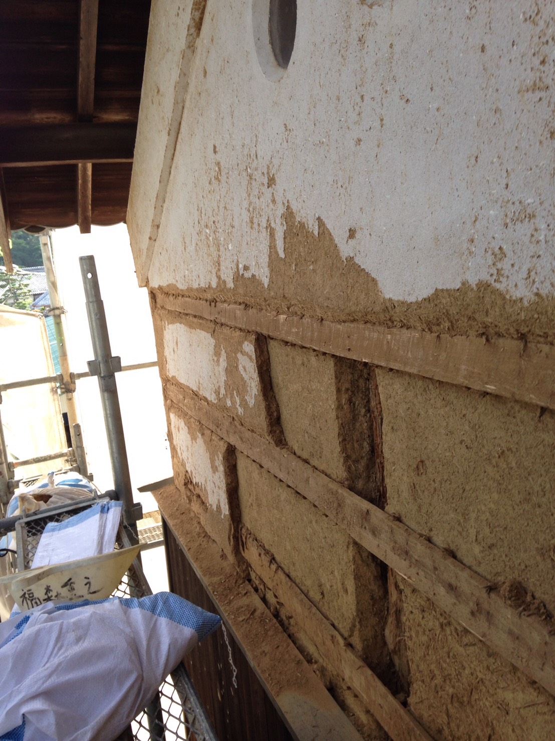 古く傷んだ漆喰・土壁を撤去。新たに復旧いたしました。