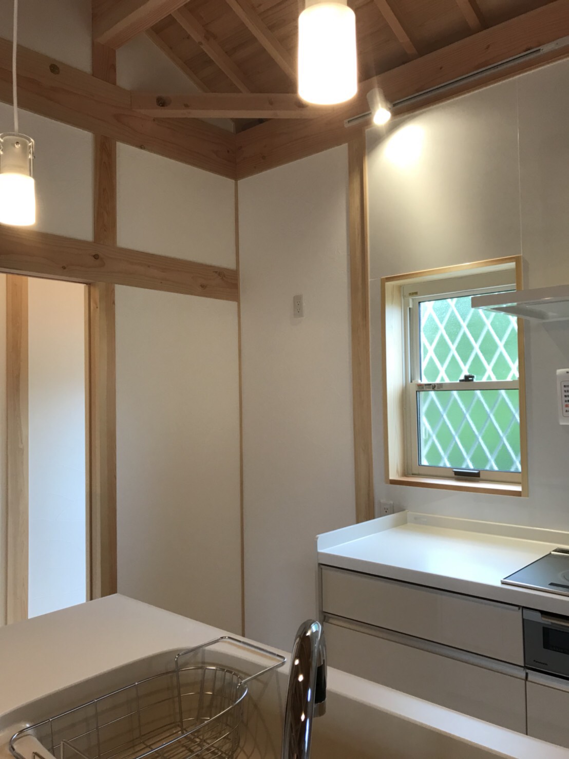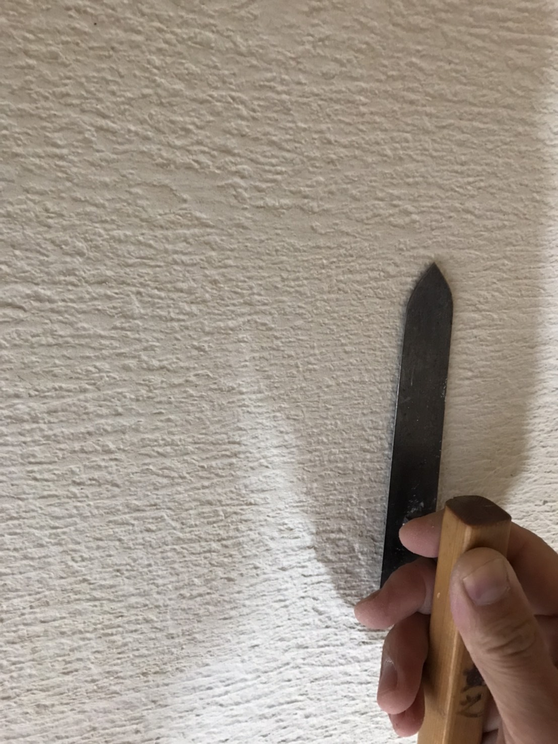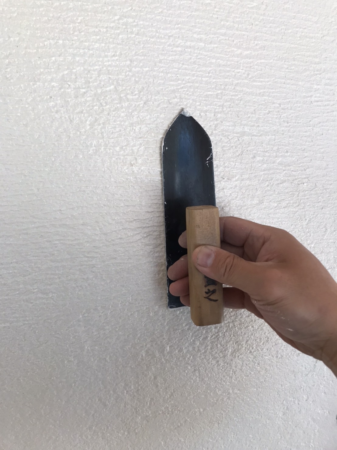 消石灰・麻スサ・海藻のリを調合し、混ぜ合わせて作った天然の漆喰のパターン仕上げ。