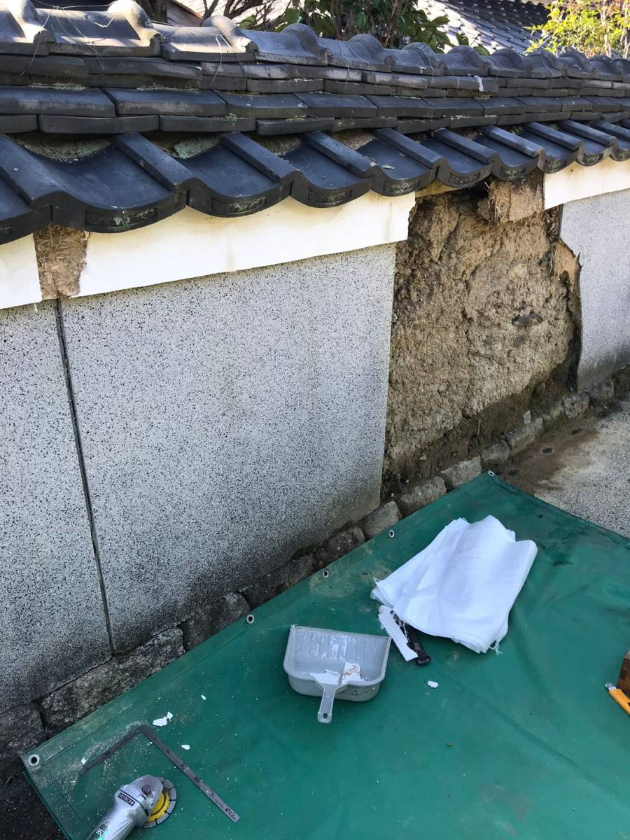 壊れた土塀の復元工事